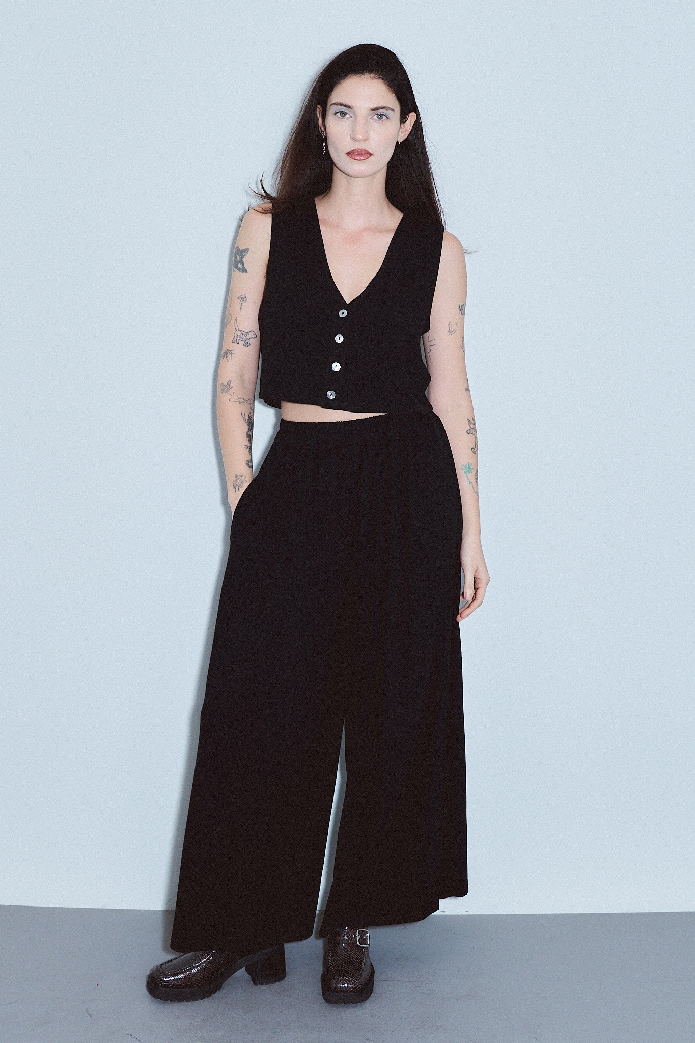 Soft Linen Vest and Pants Set Black