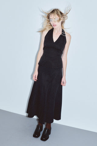 Office Bias Cut Skirt Tencel Stripe Black