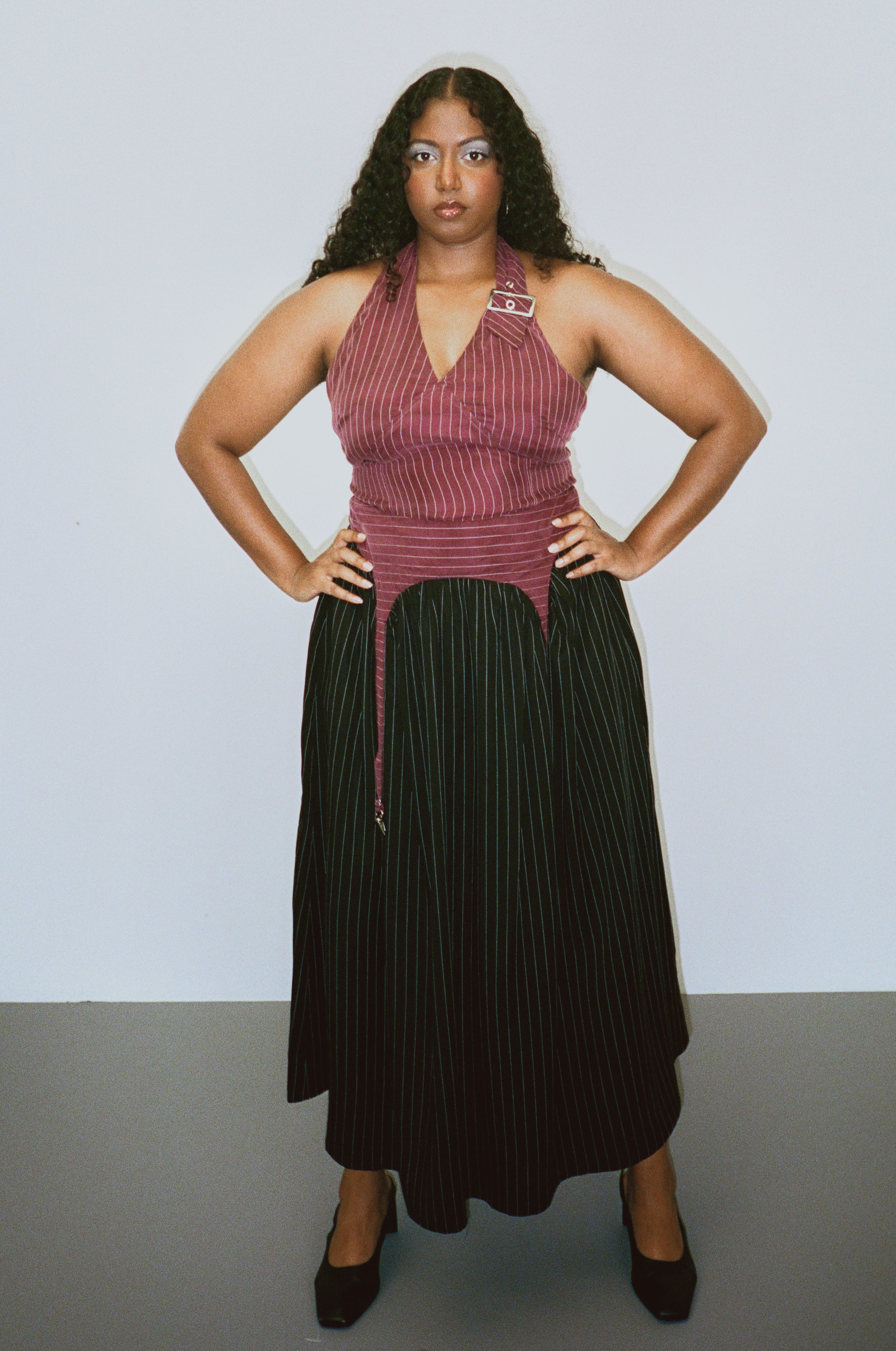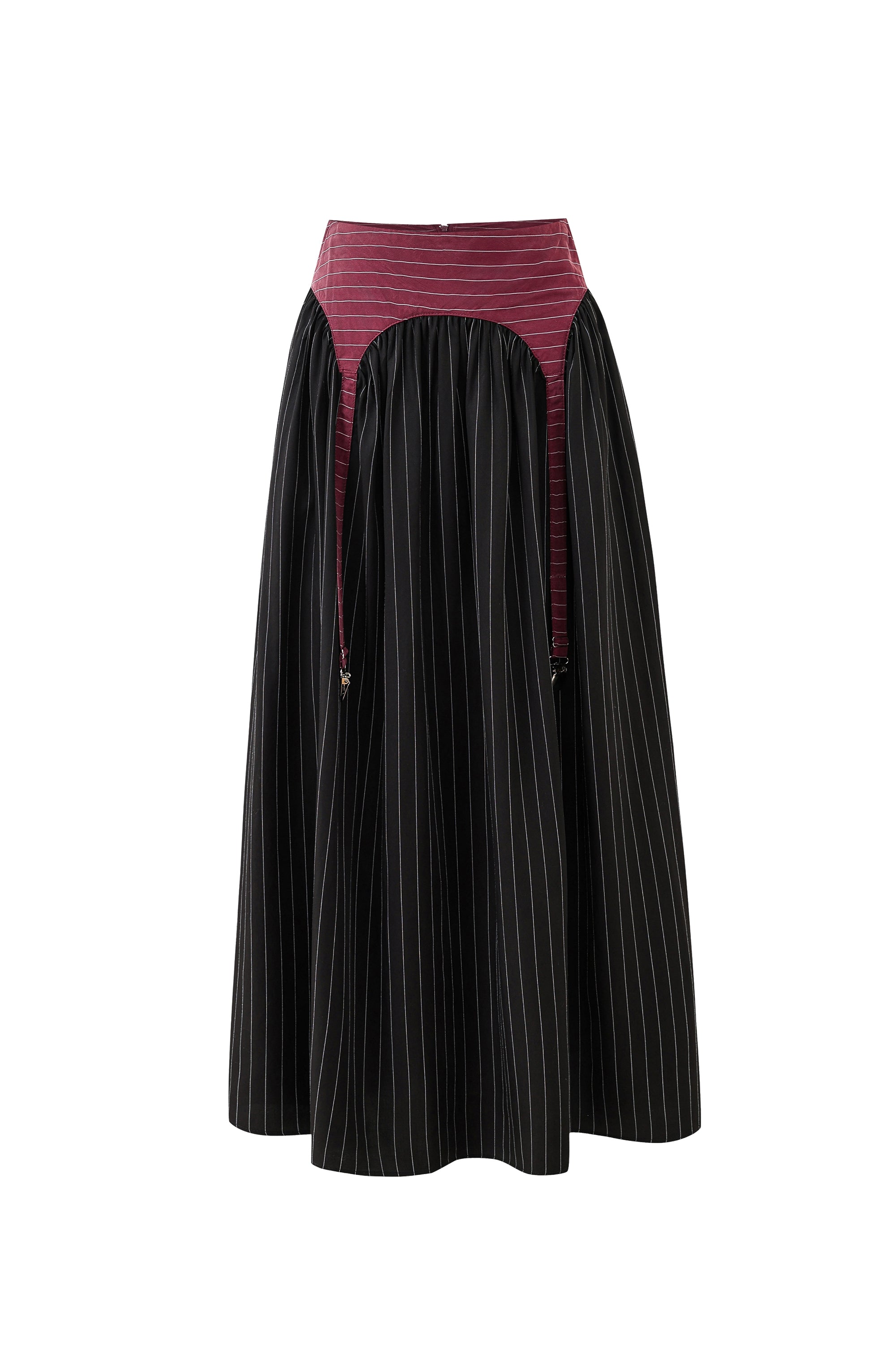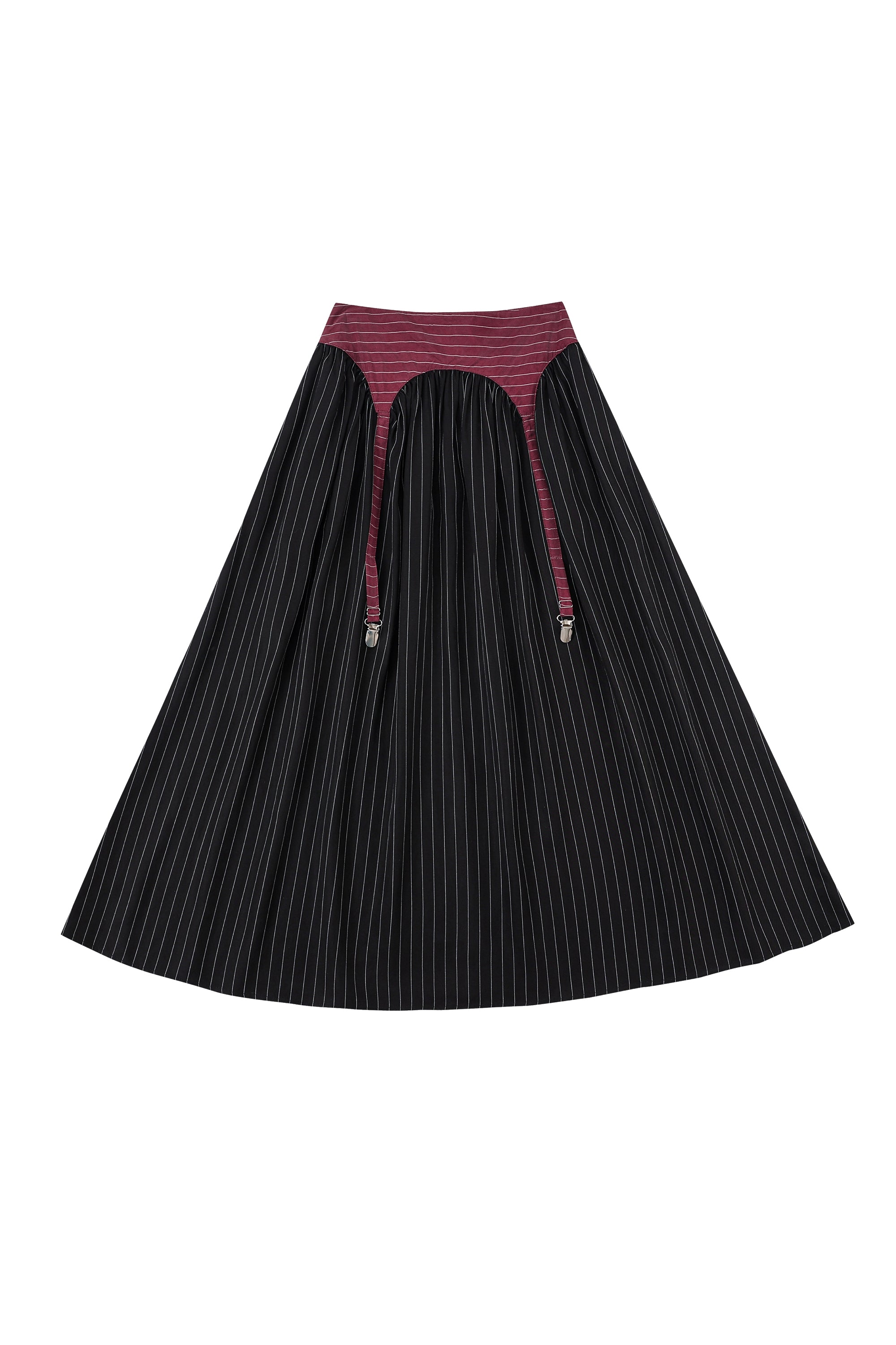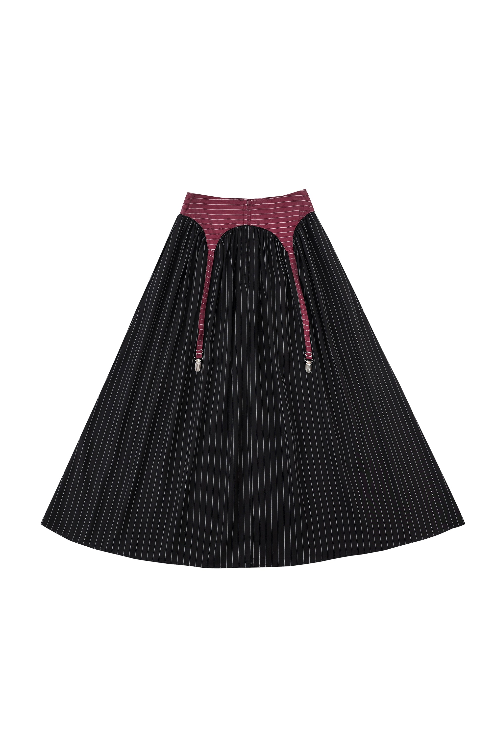 Garter Skirt Tencel Stripe Maroon/Black