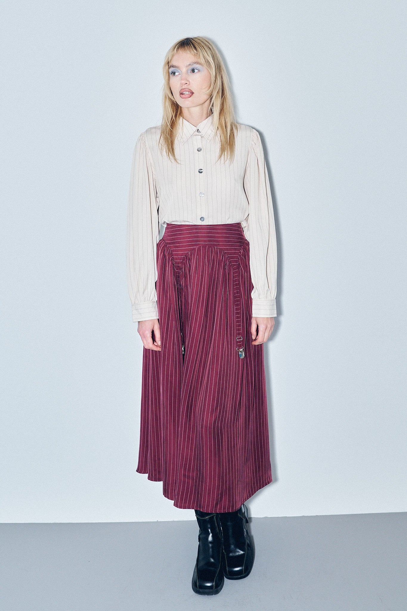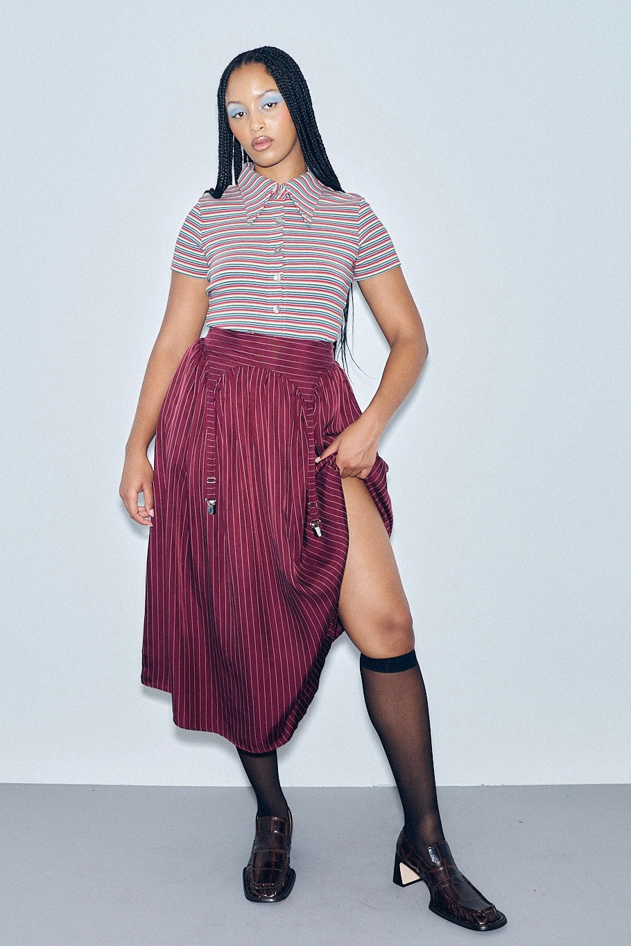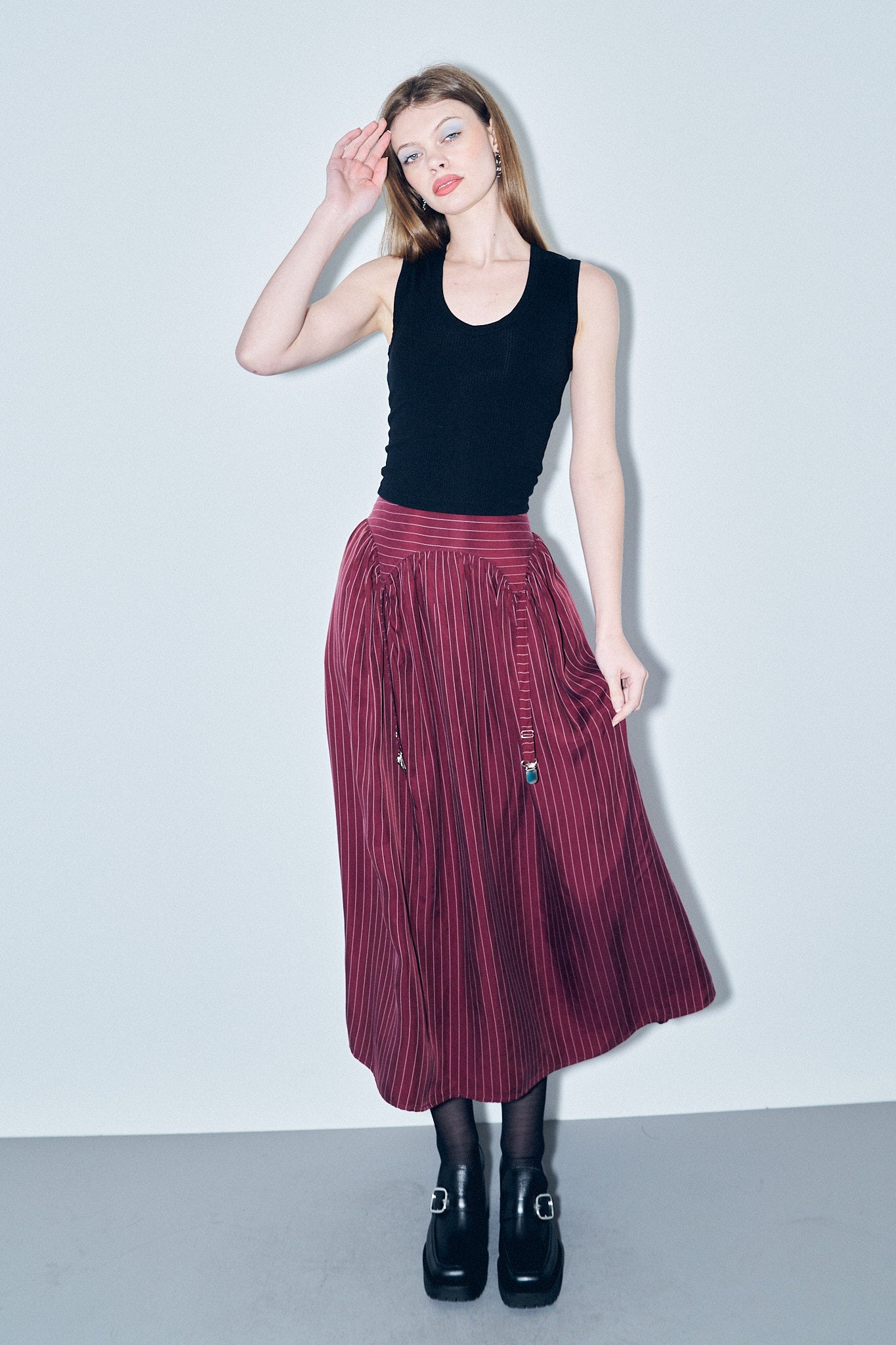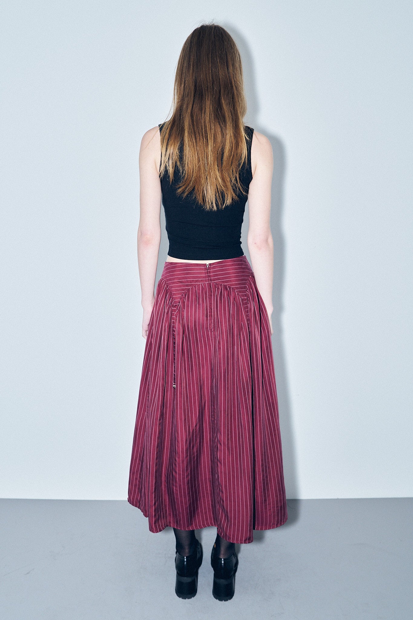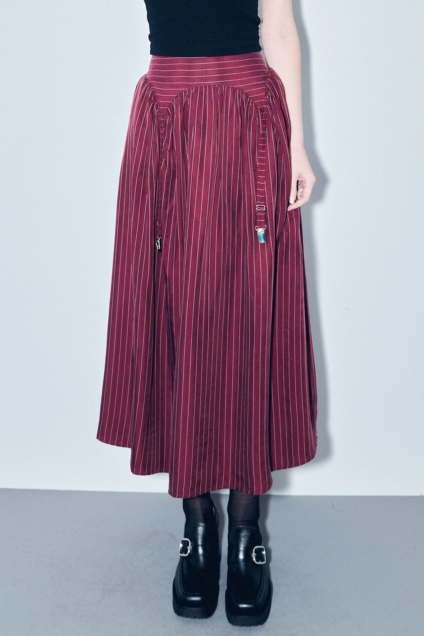 Garter Skirt Tencel Stripe Maroon