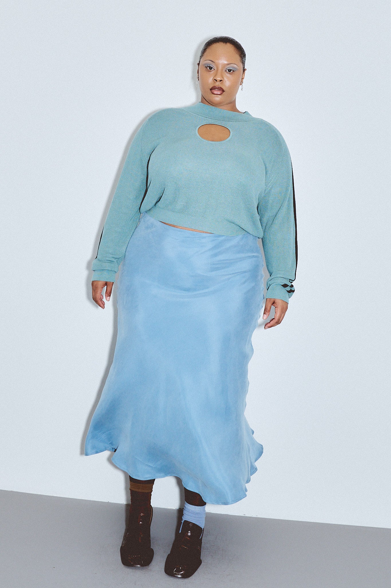 Japanese Cupro Bias Cut Skirt Ice Blue