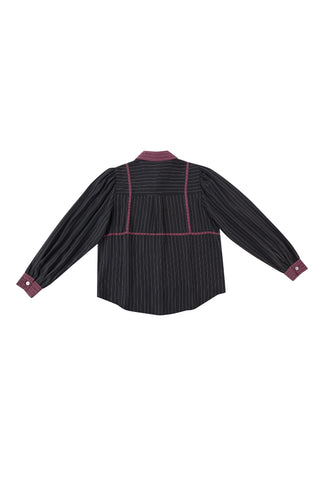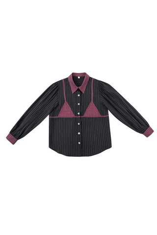 Tencel Stripe Bikini Bod Blouse Black/Maroon