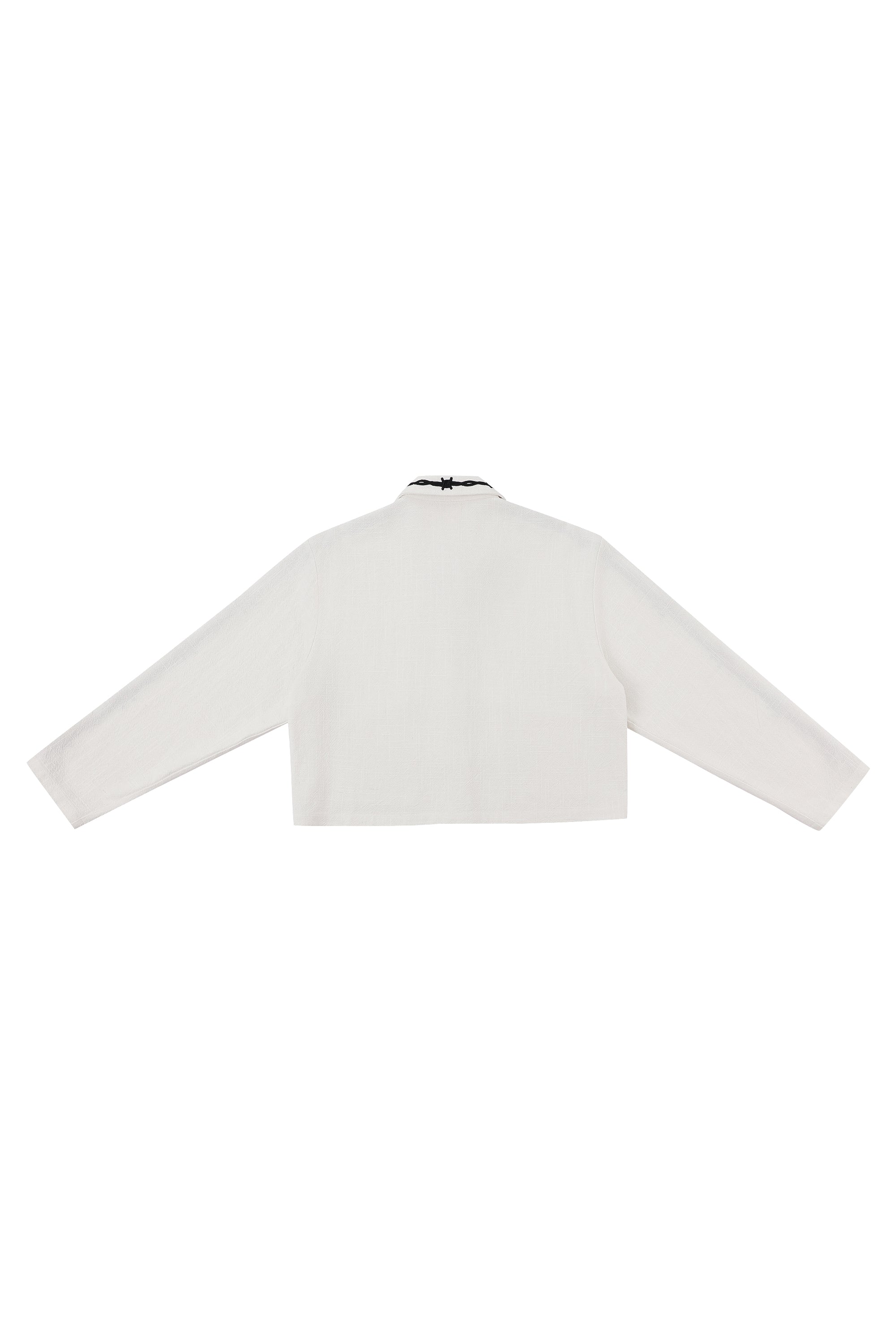 The perfect crop chore jacket is now in Pammy style. 100% thick n sturdy soft linen with silver metal buttons and sturdy silver barbed wire embroidery along the sleeves and collar. This will surely motivate you to get those chores done.