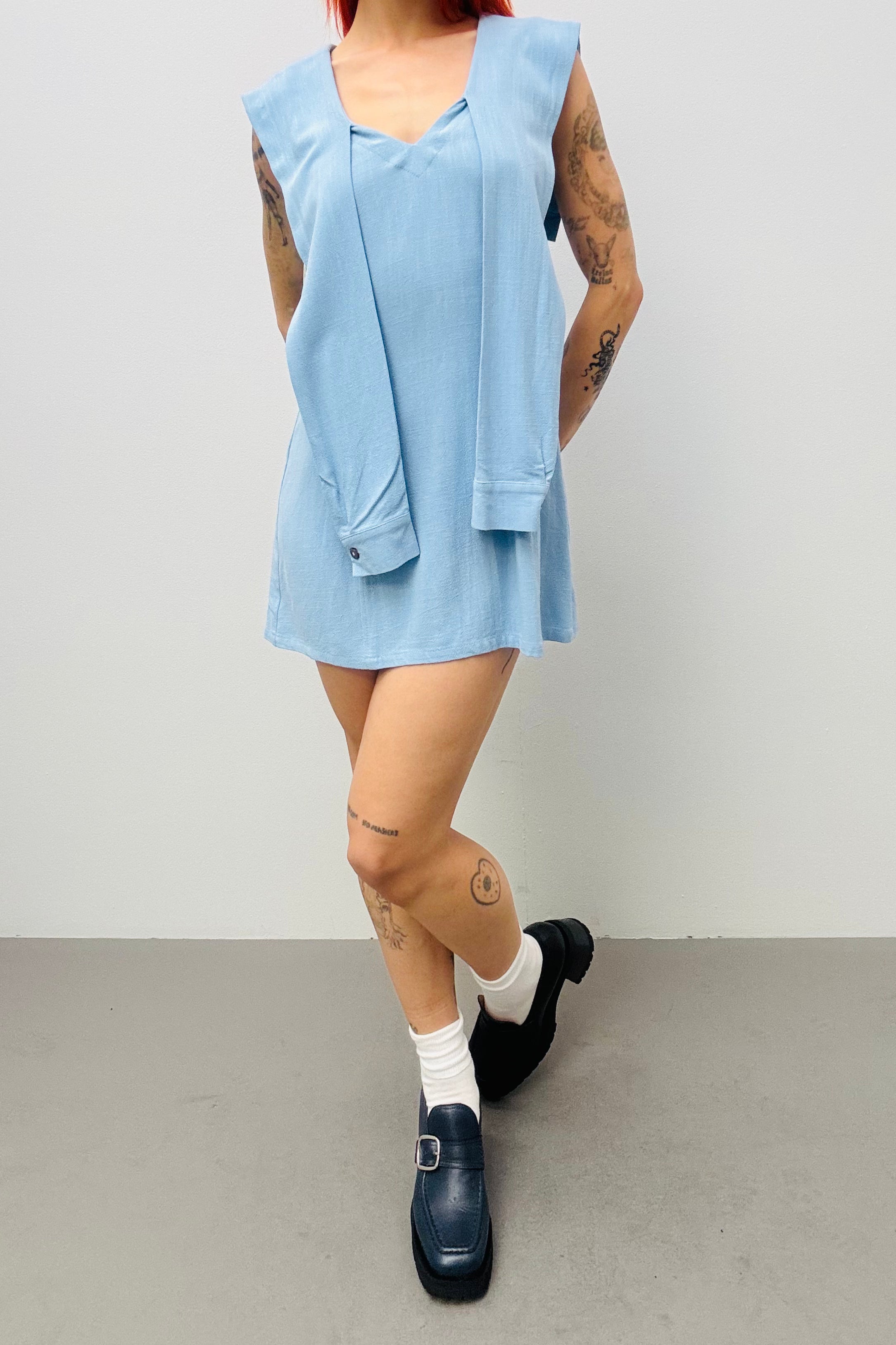 SAMPLE #558 - S Blue Linen Sweater Dress