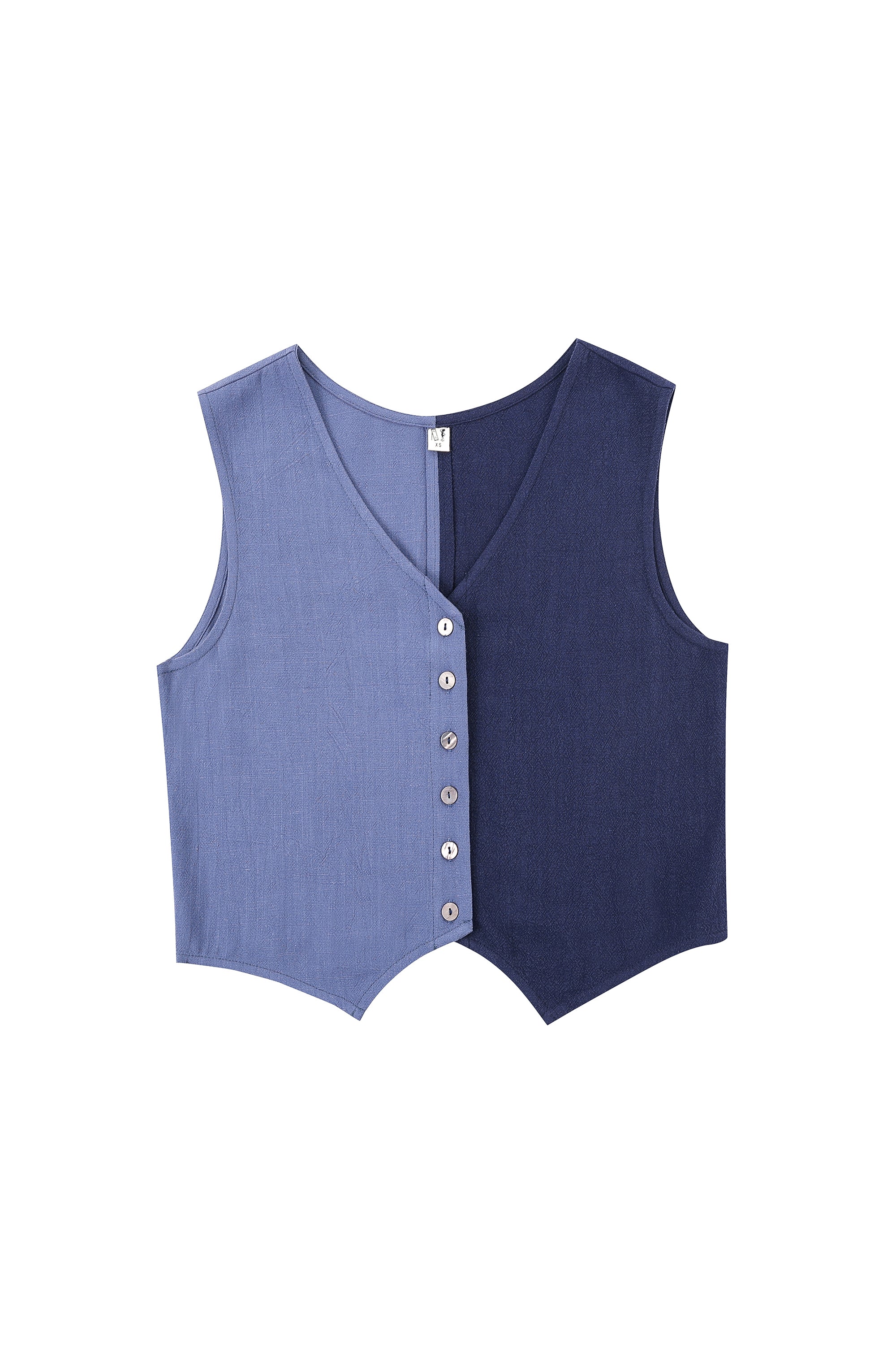 Split Blue and Navy Linen Matching Vest and Pants Set