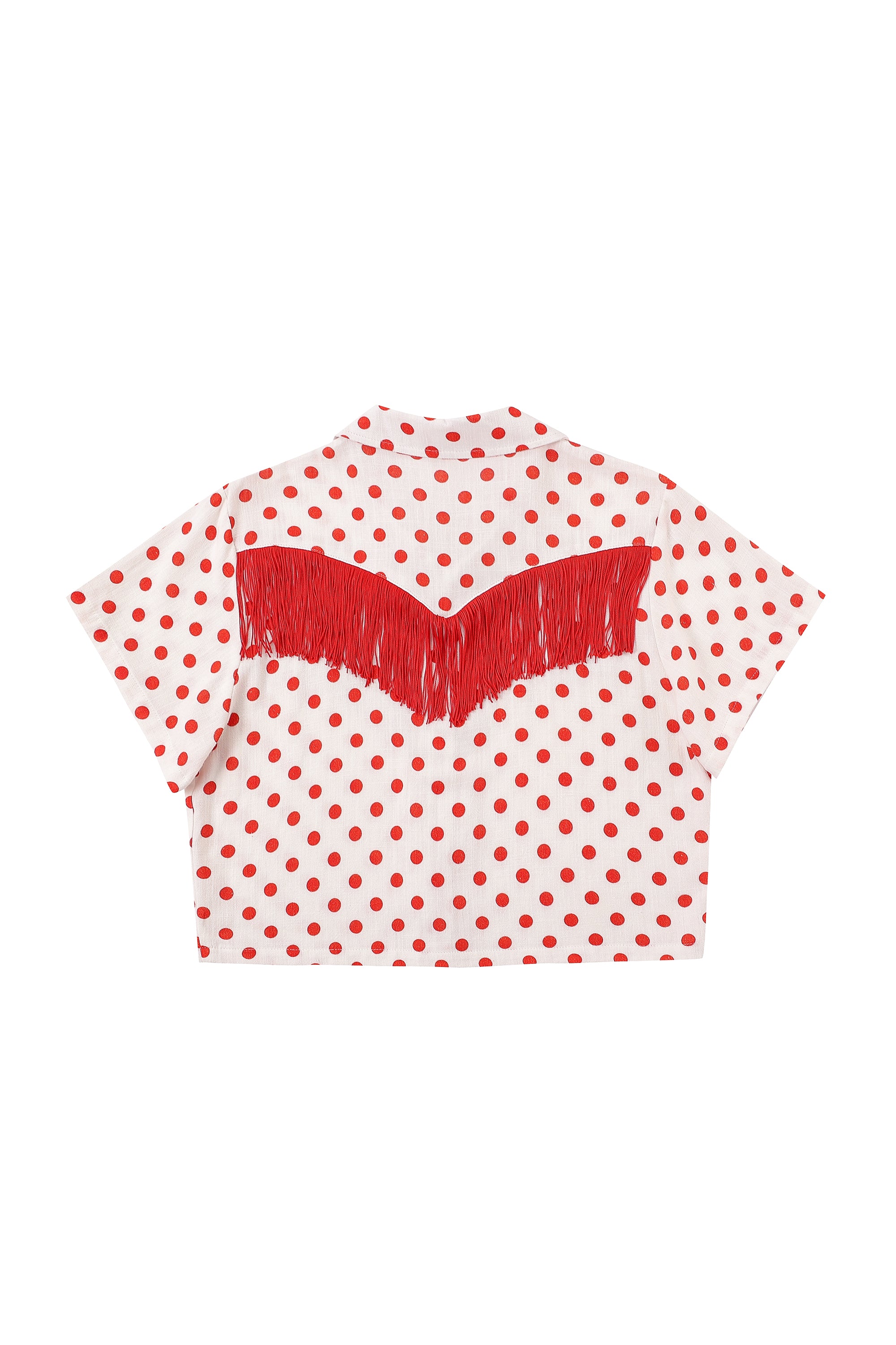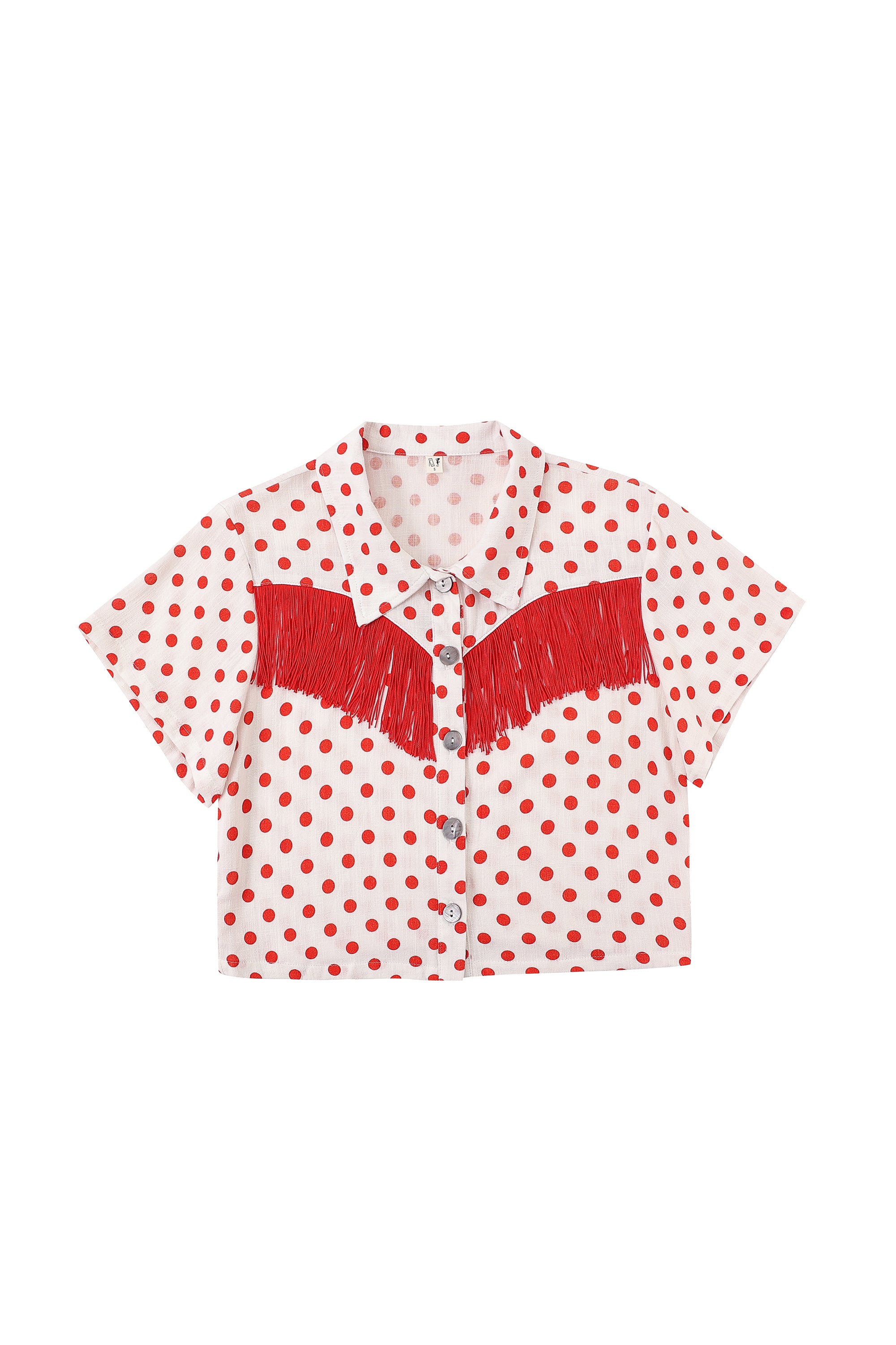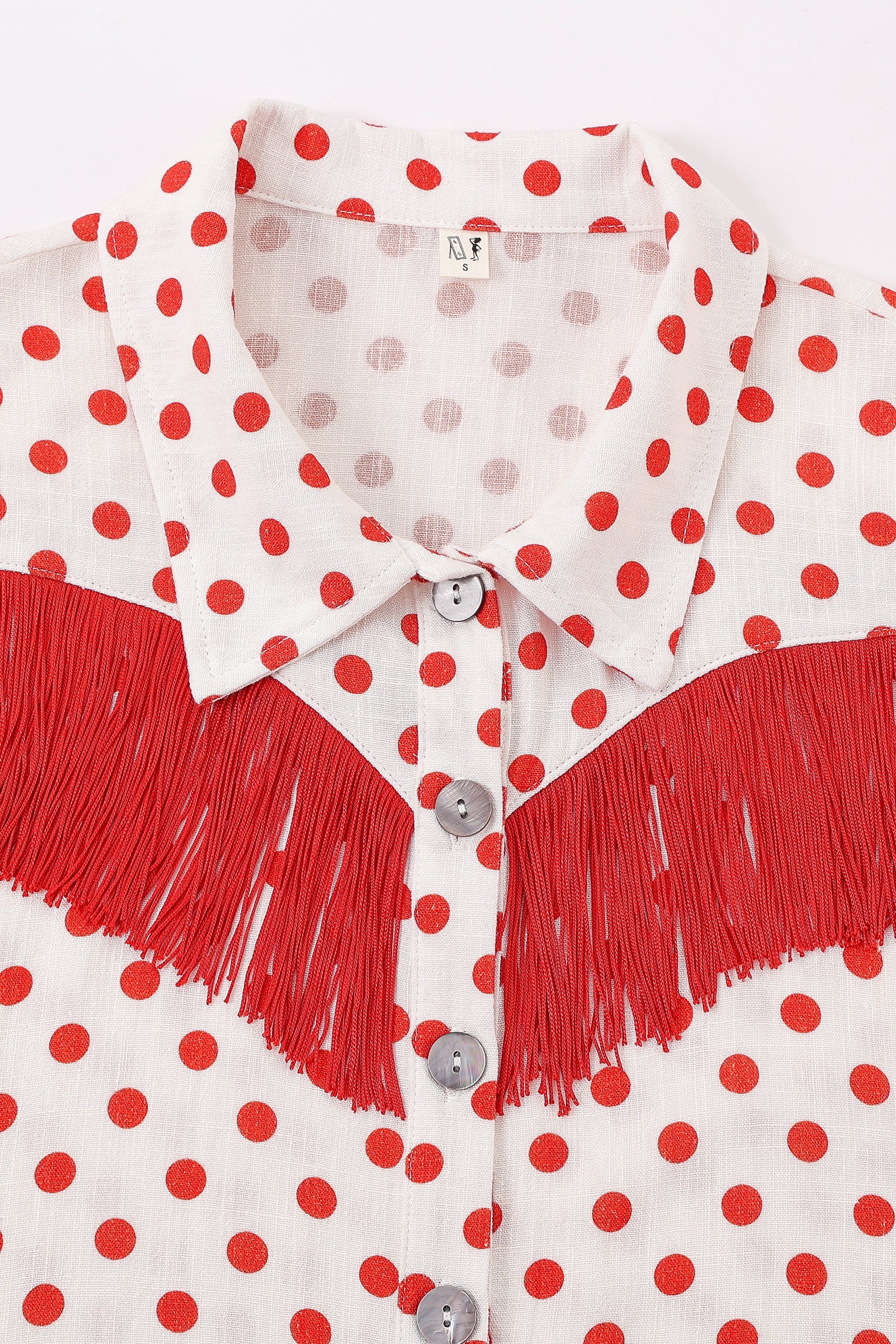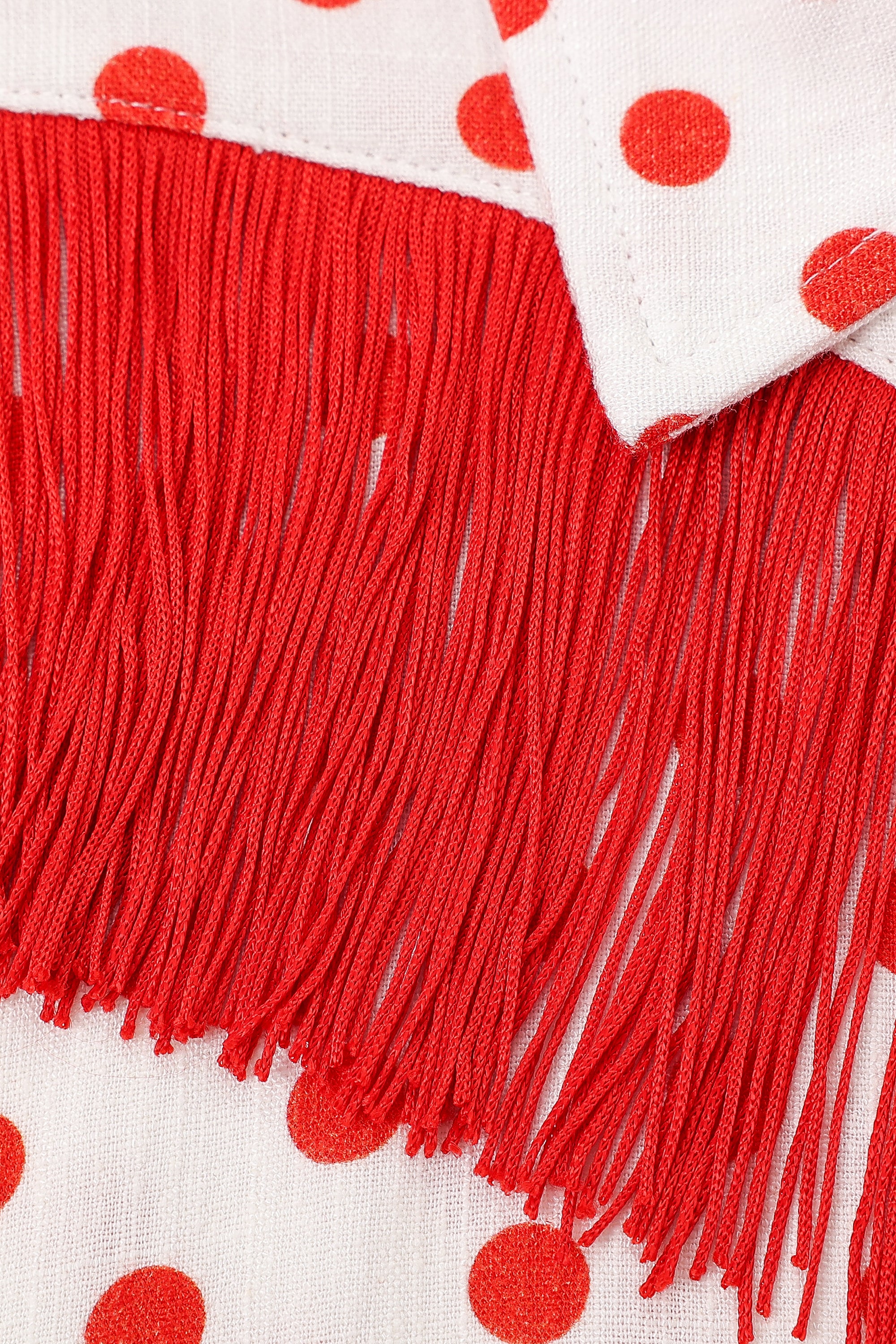 Soft Linen Fringe Blouse Red Polka Dot