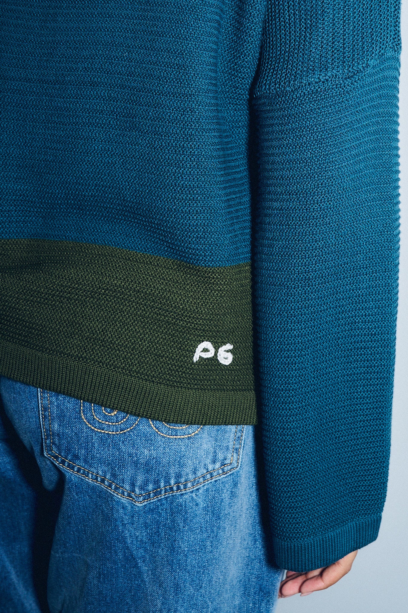 -The sweater is machine knit but all details of the sweater are knit by hand