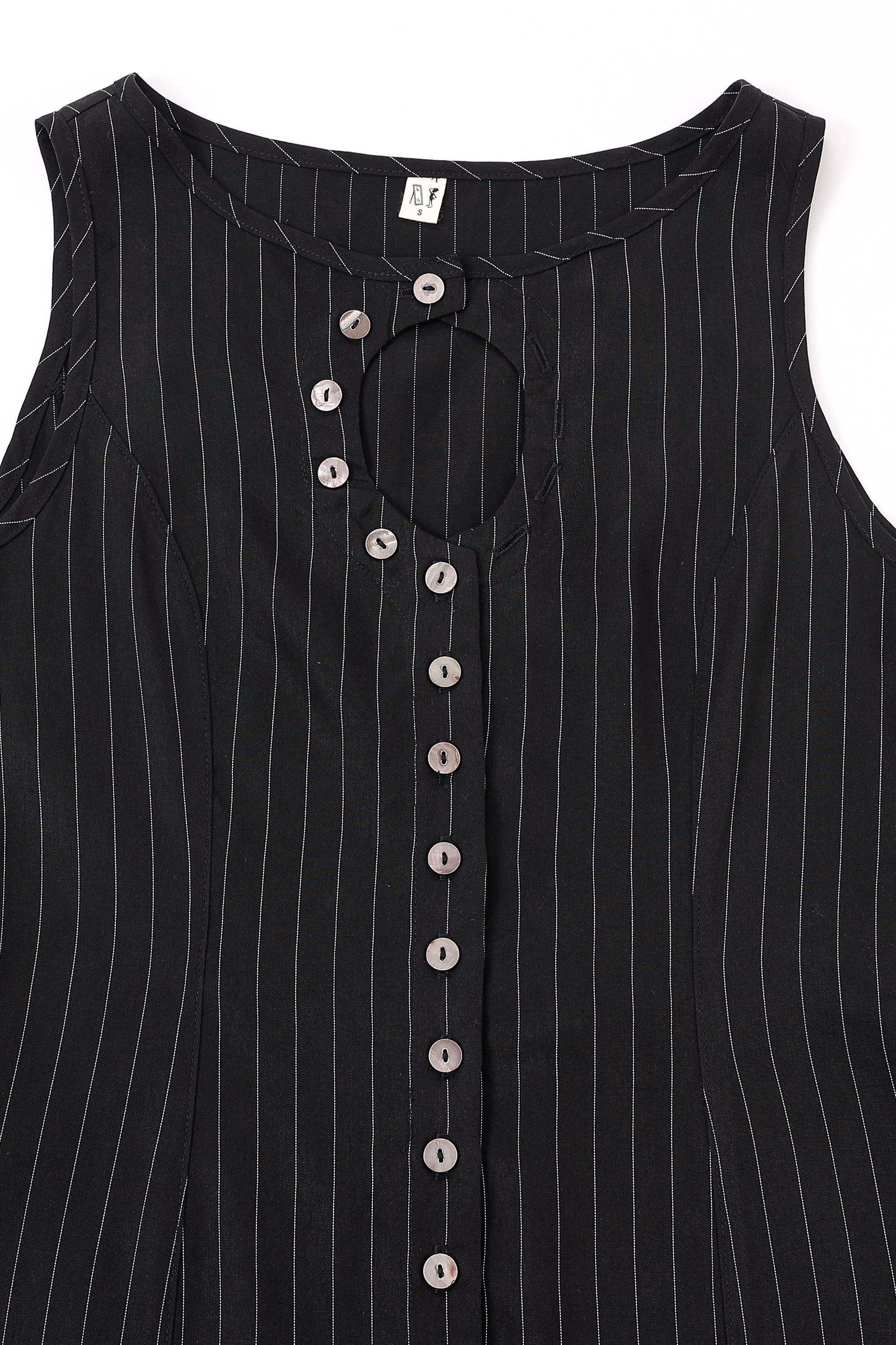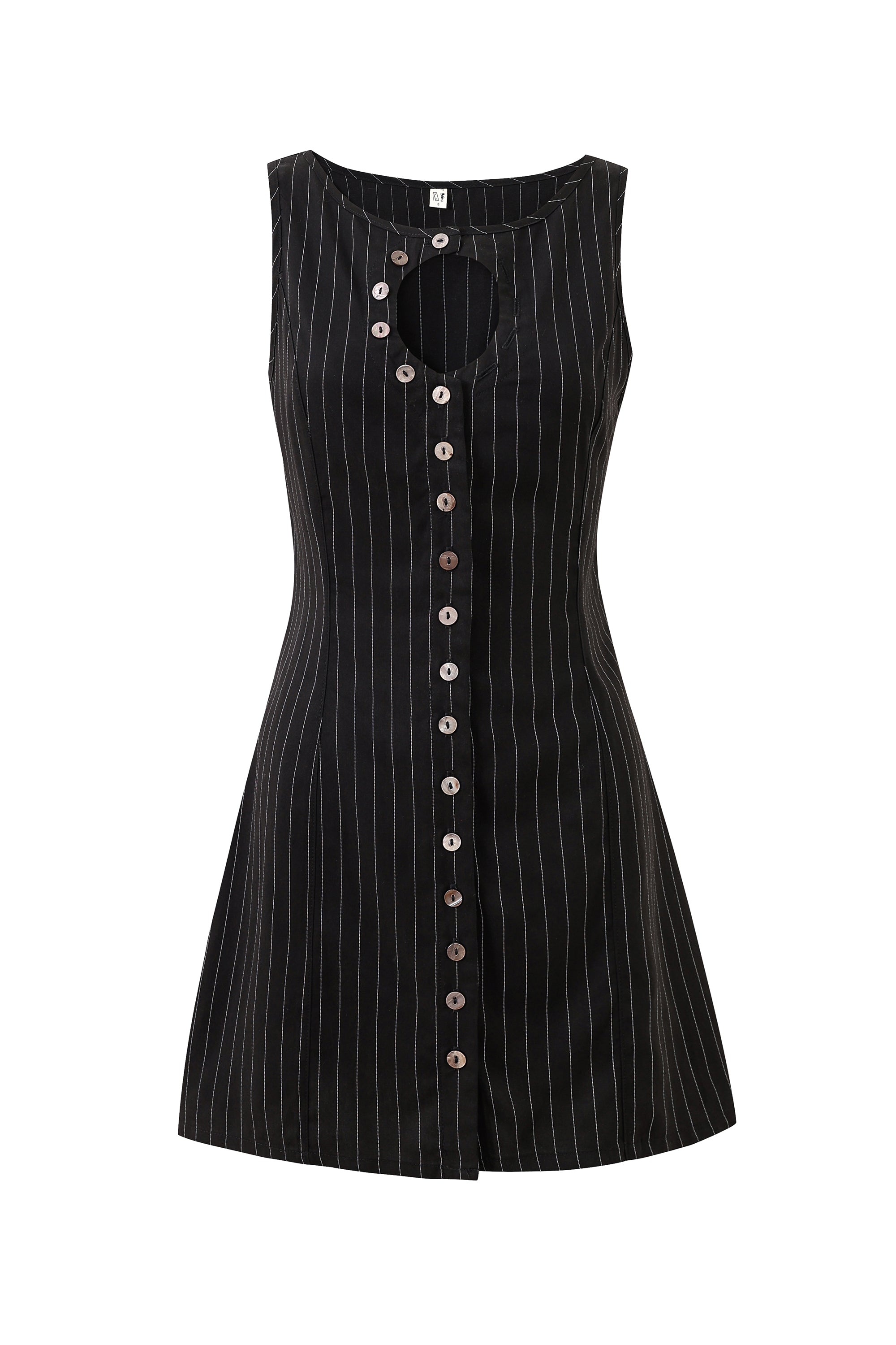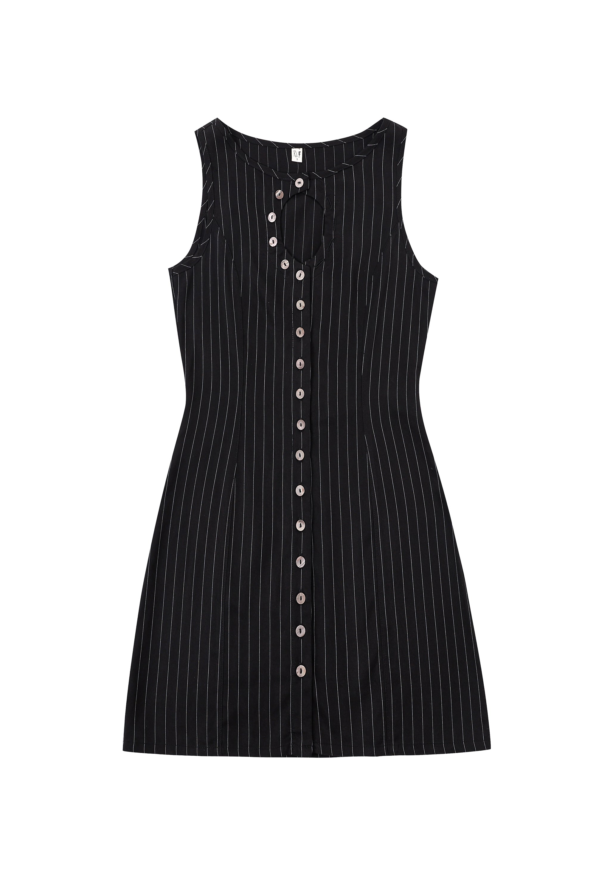 PRE-ORDER: Unbuttoned Mini Dress Tencel Stripe Black