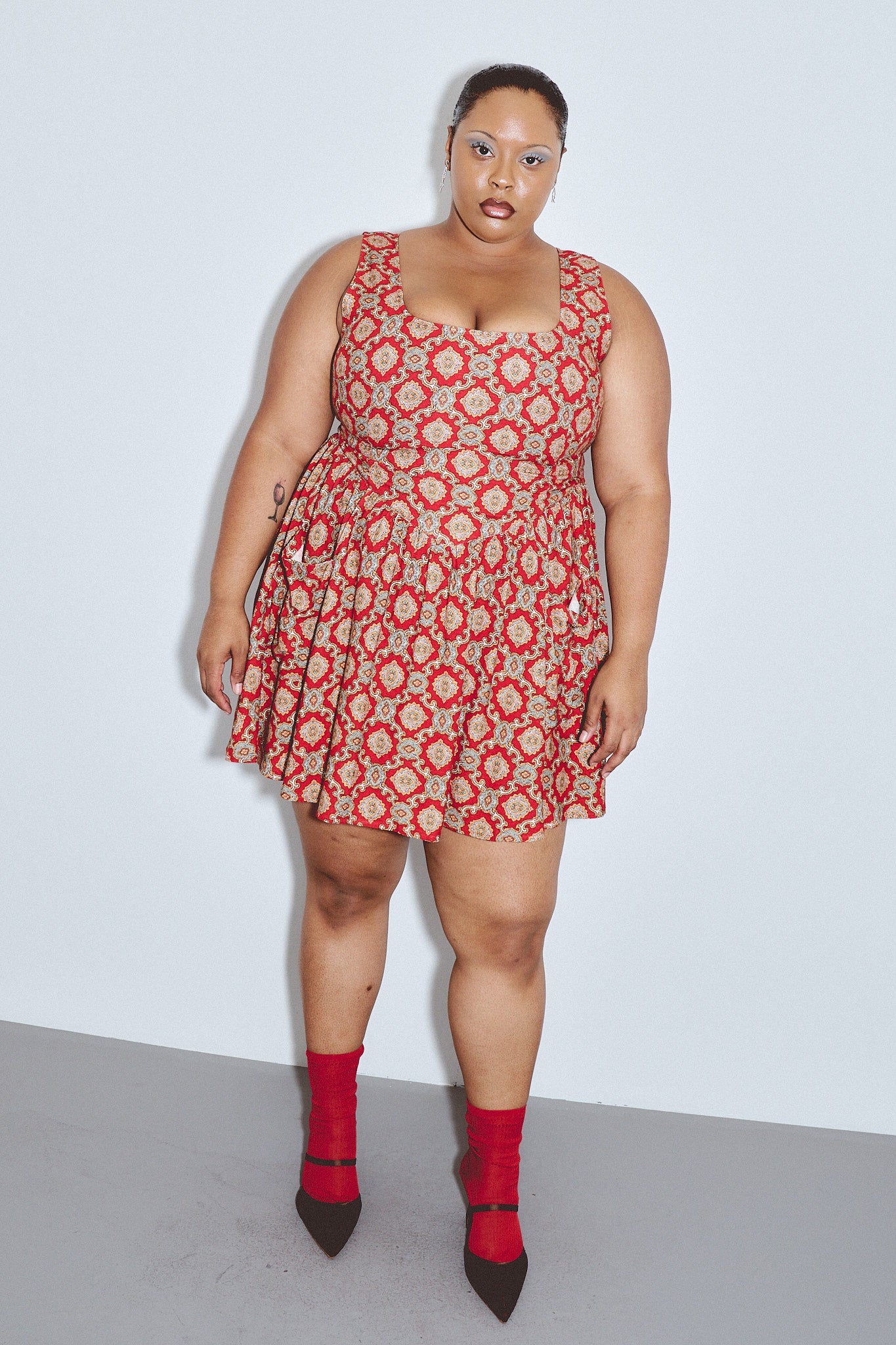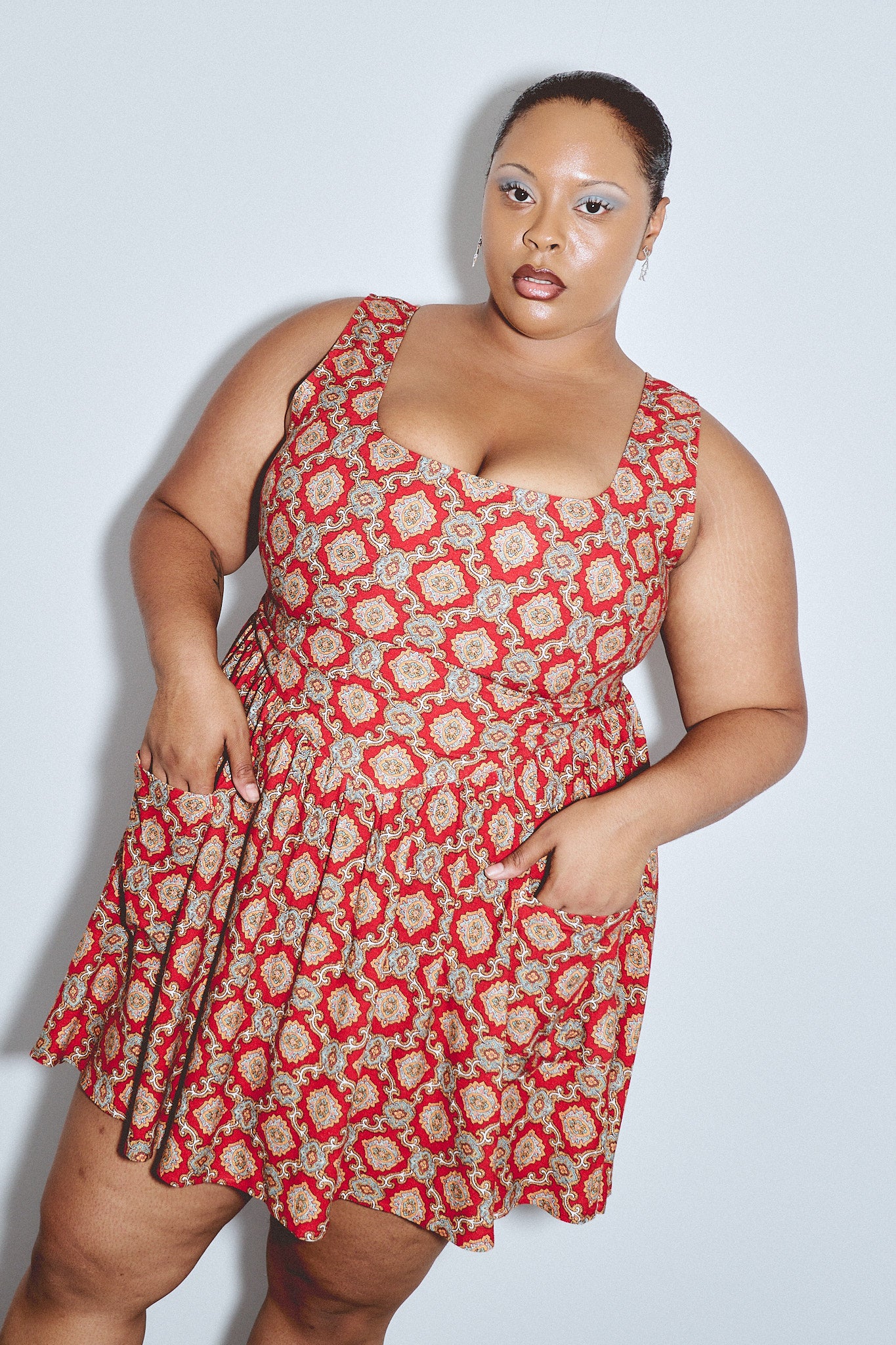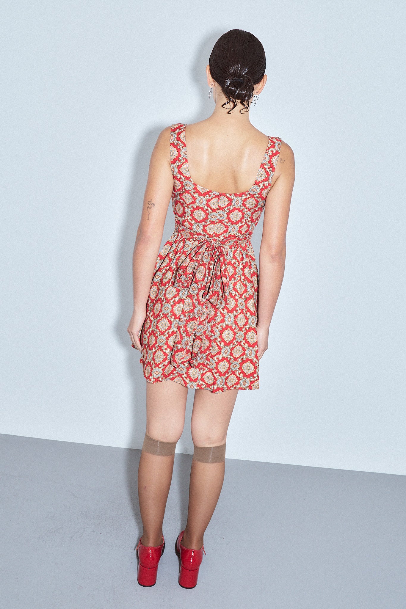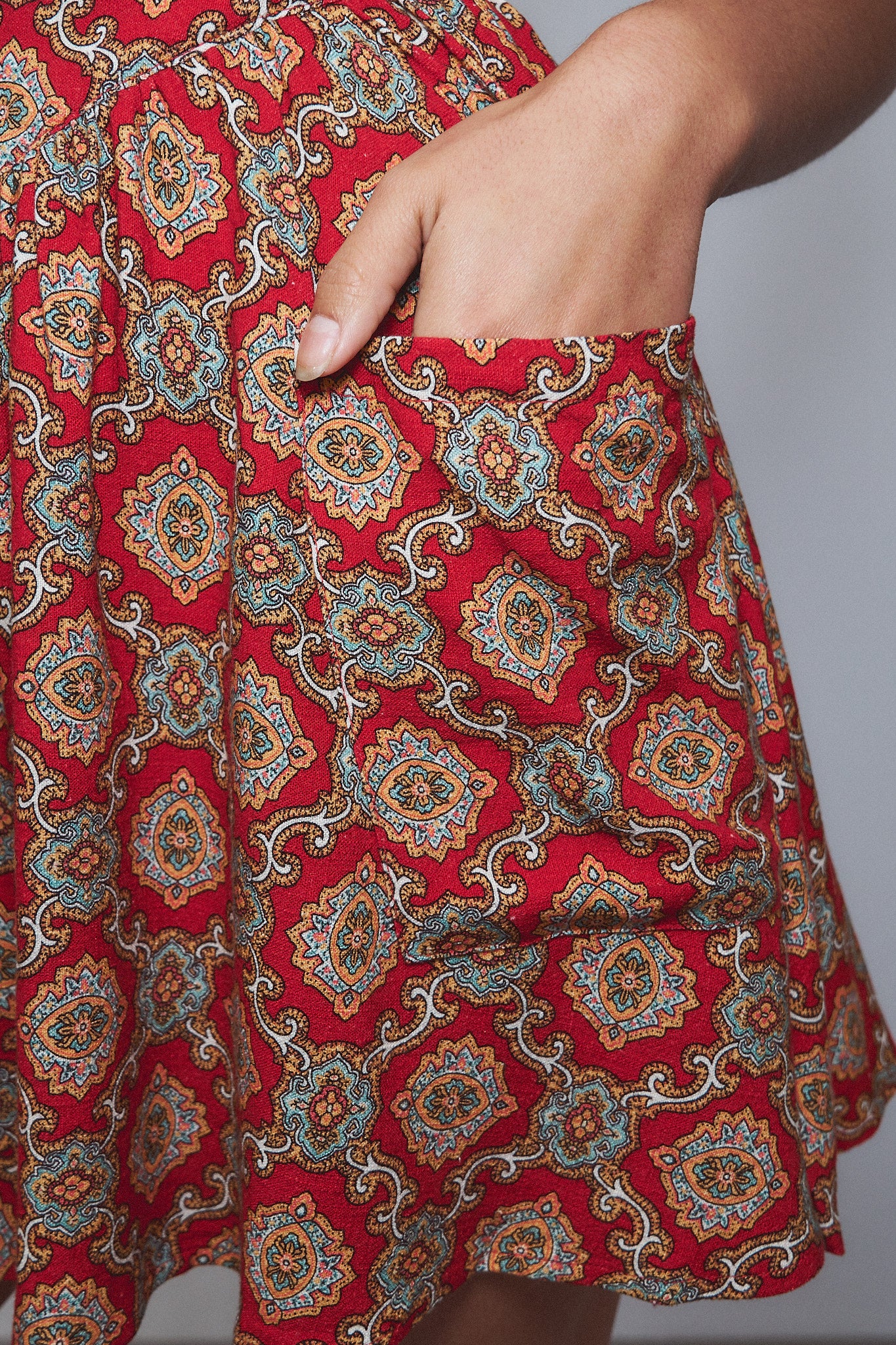 Trad Mistress Soft Linen Mini Dress Fancy Red Couch