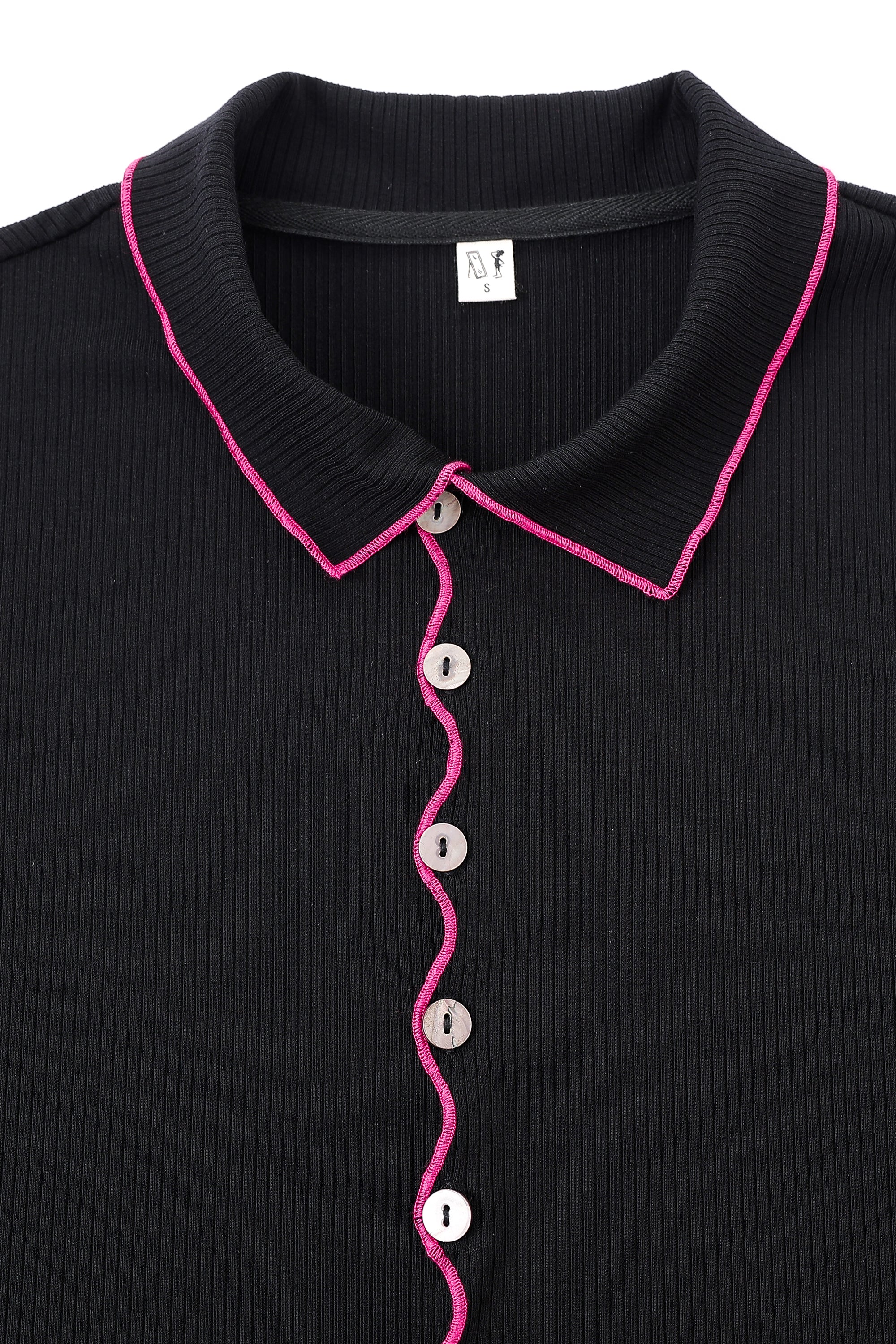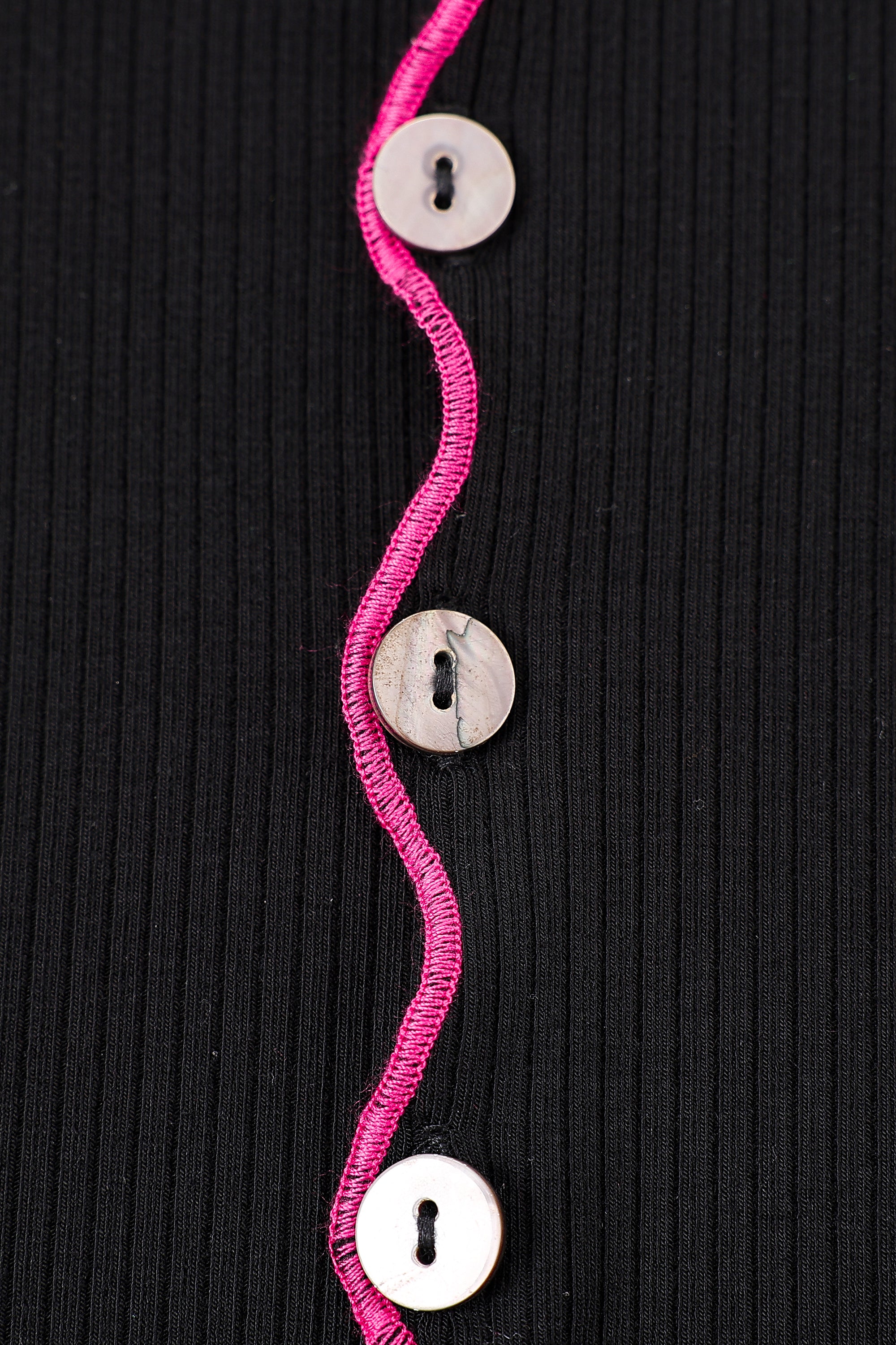 Long Sleeve Contrast Seam Tencel Rib Cardigan Black/Pink