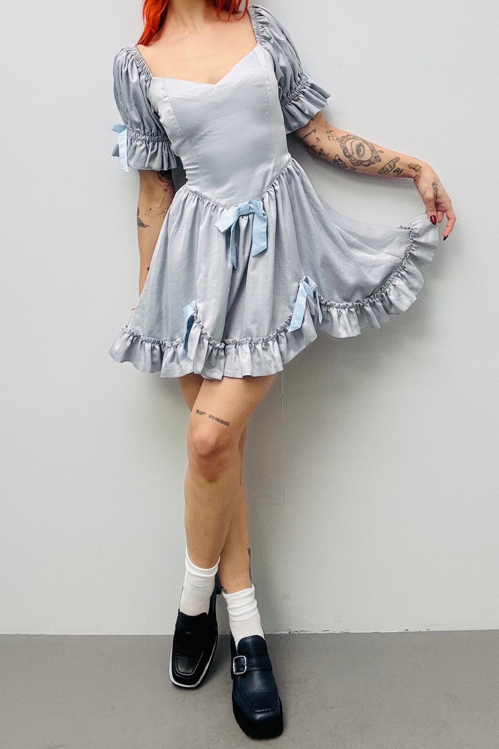 SAMPLE #559 - S Silver / Blue satin Mini Dress