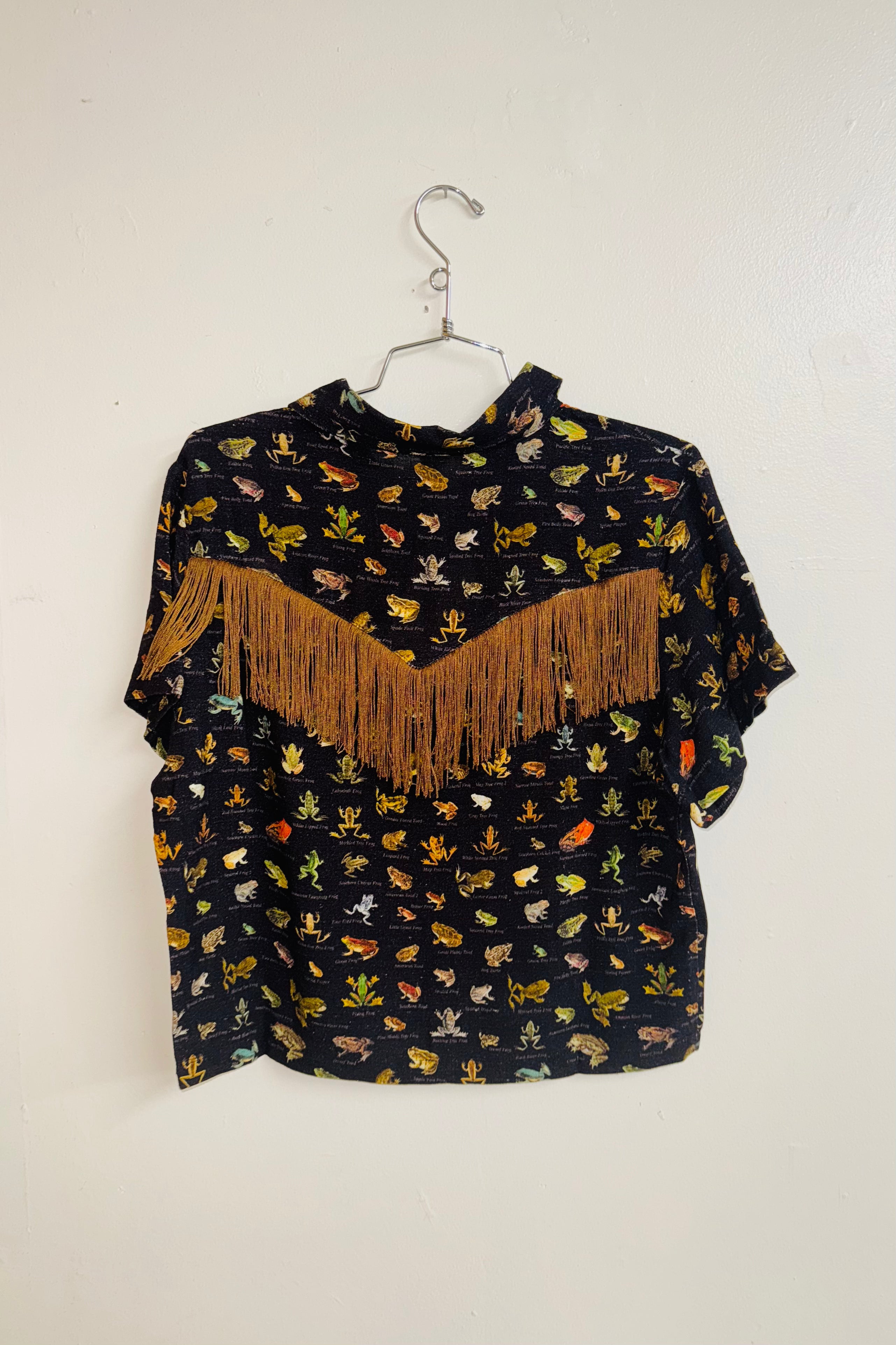 Cropped Favorite Frogs / Brown Fringe Blouse