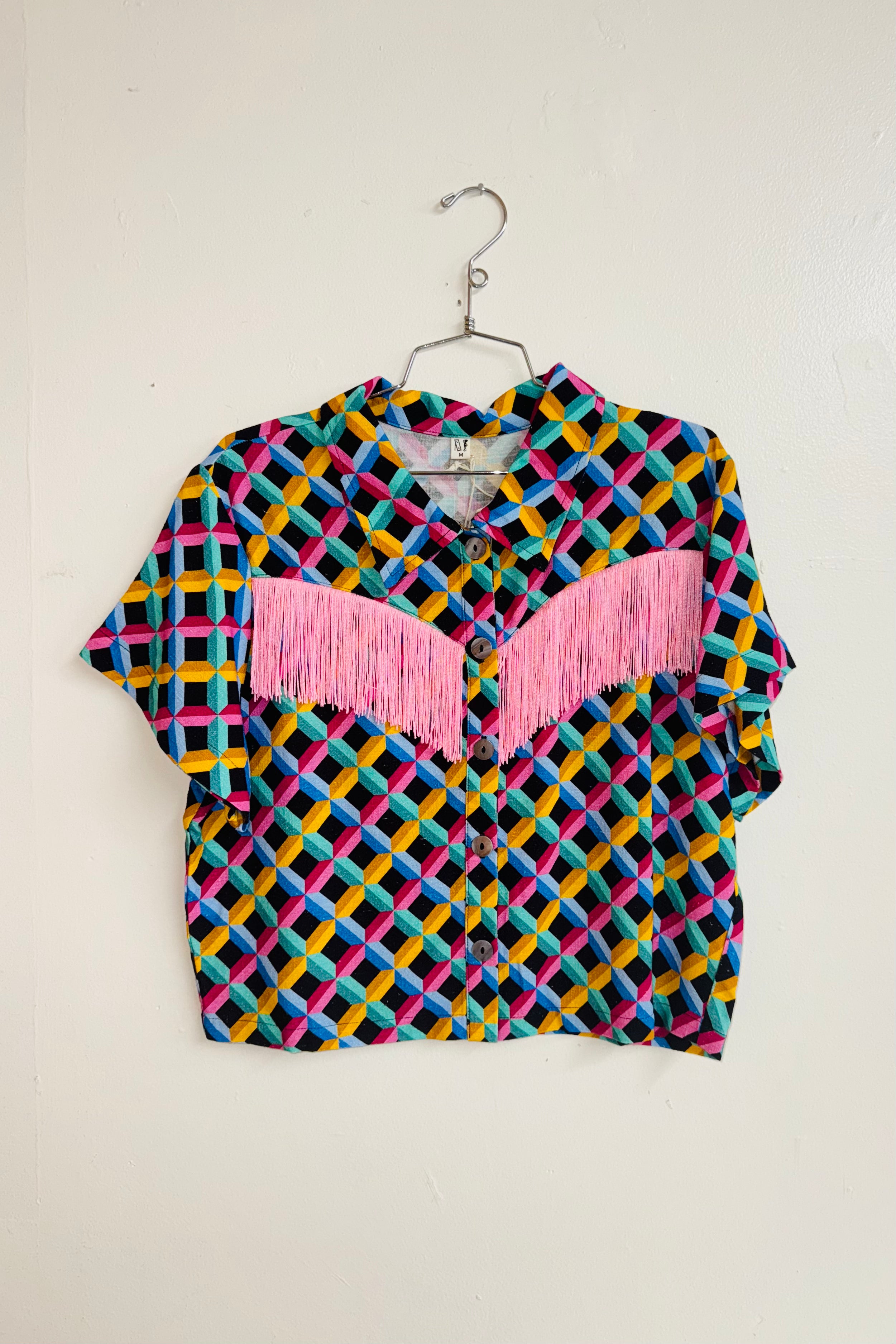 Cropped Screensaver / Pink Fringe Blouse