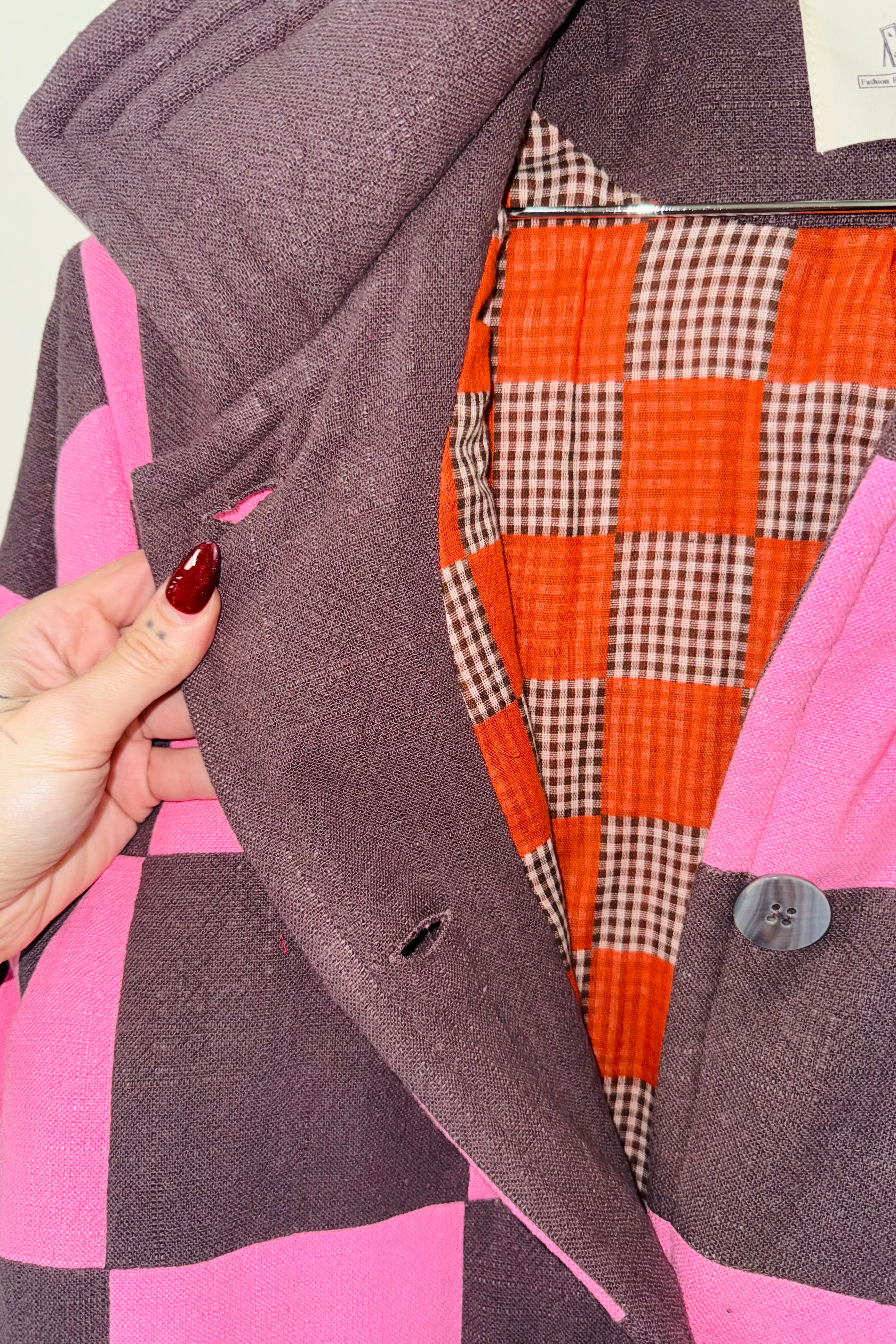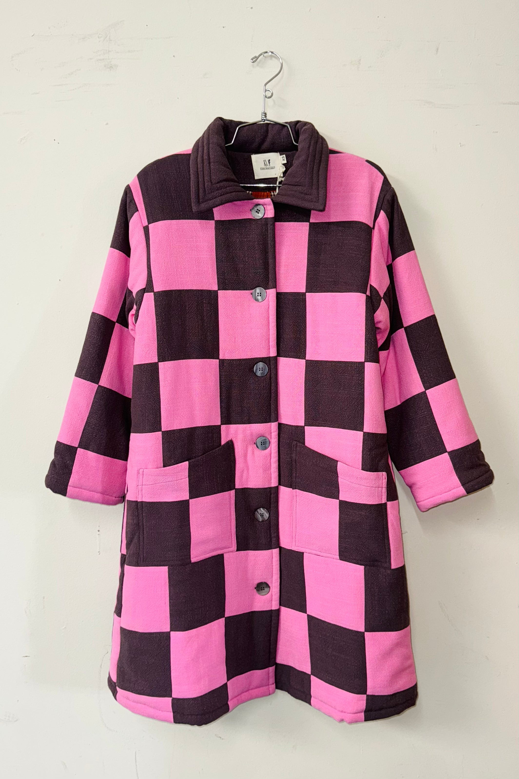 #10 XS/S Scrap Chessboard Quilted Coat Pink/Brown