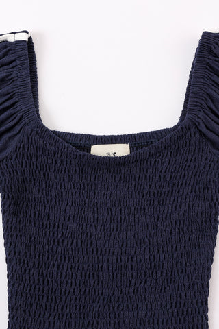 Boat Neck Mesh Shift Tank Blue Polka Dot