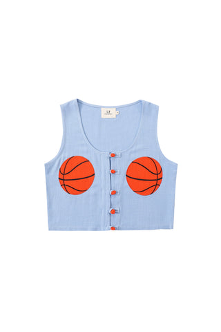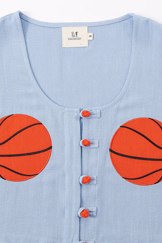 Wench Crop Top Soft Linen Blue Polka Dot