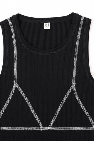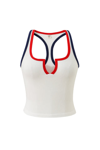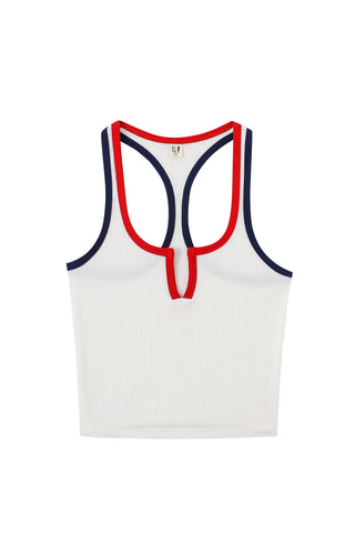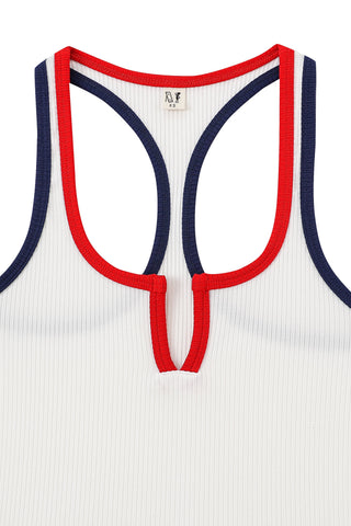Split Racerback Tencel Rib Tank White/Red/Navy