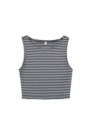 Boat Neck Mesh Shift Tank Blue Polka Dot