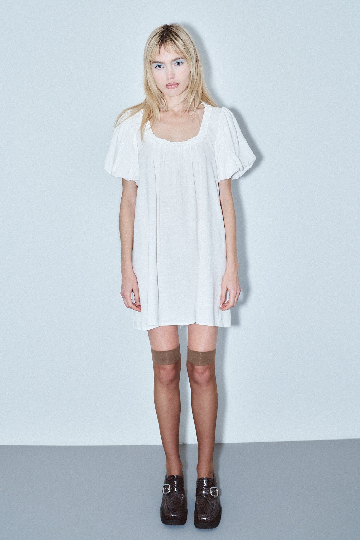Soft Linen Babydoll Mini Dress White