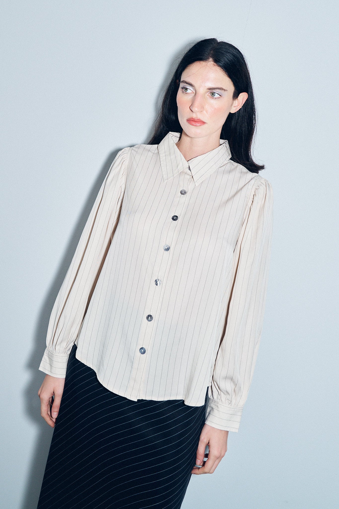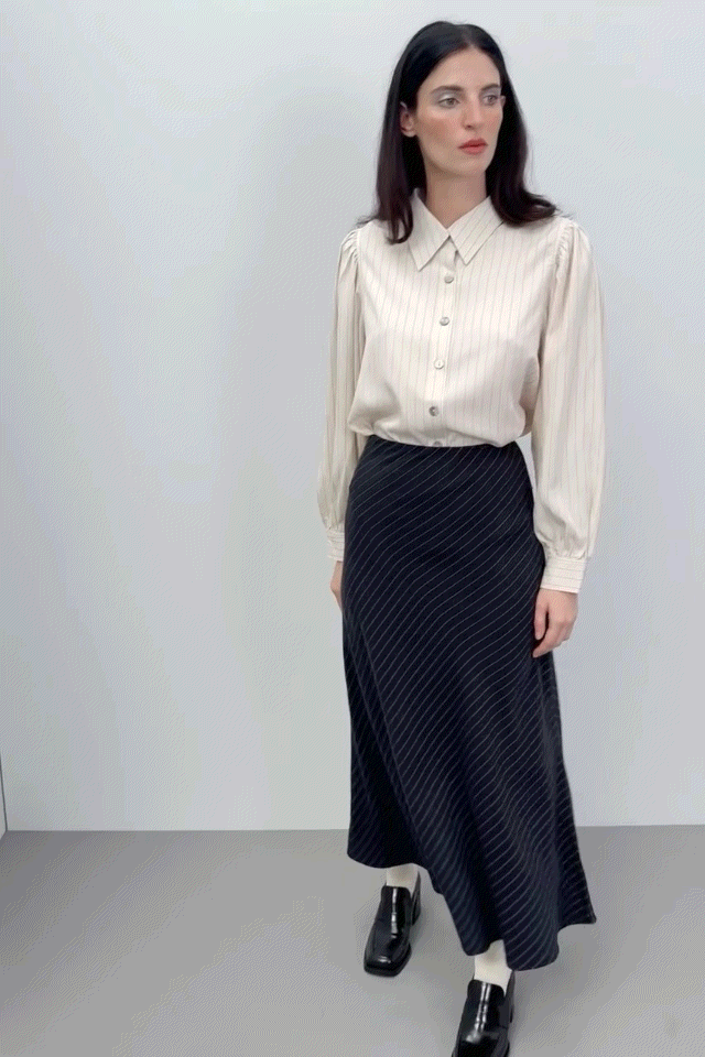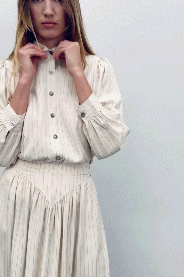 Baseball Blouse Tencel Stripe Cream