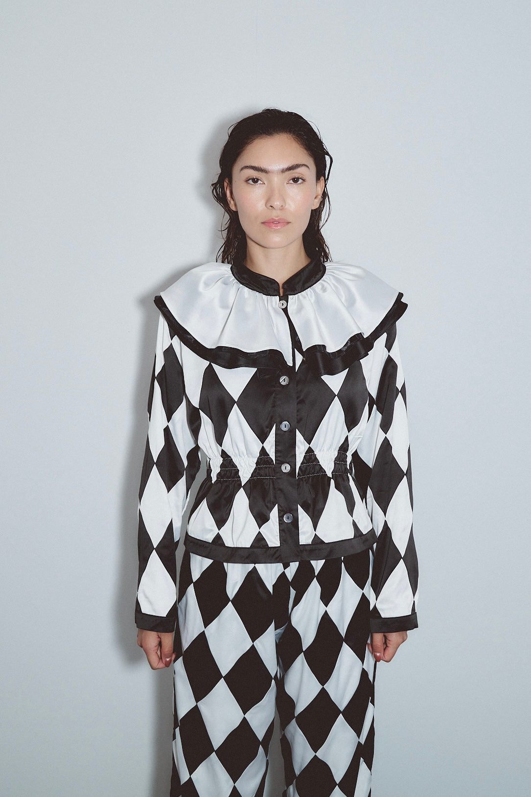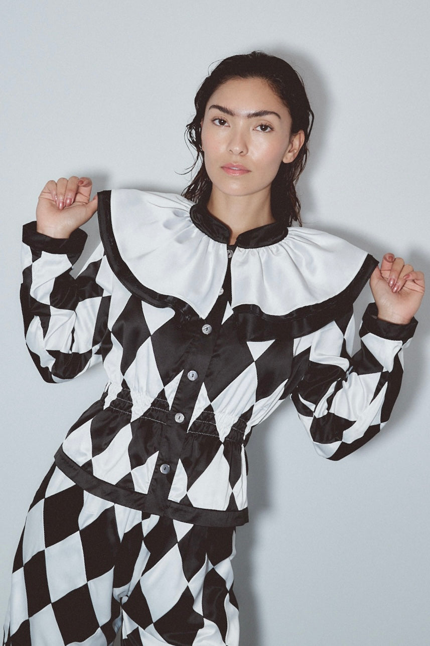Quilted Satin Harlequin Jester Top