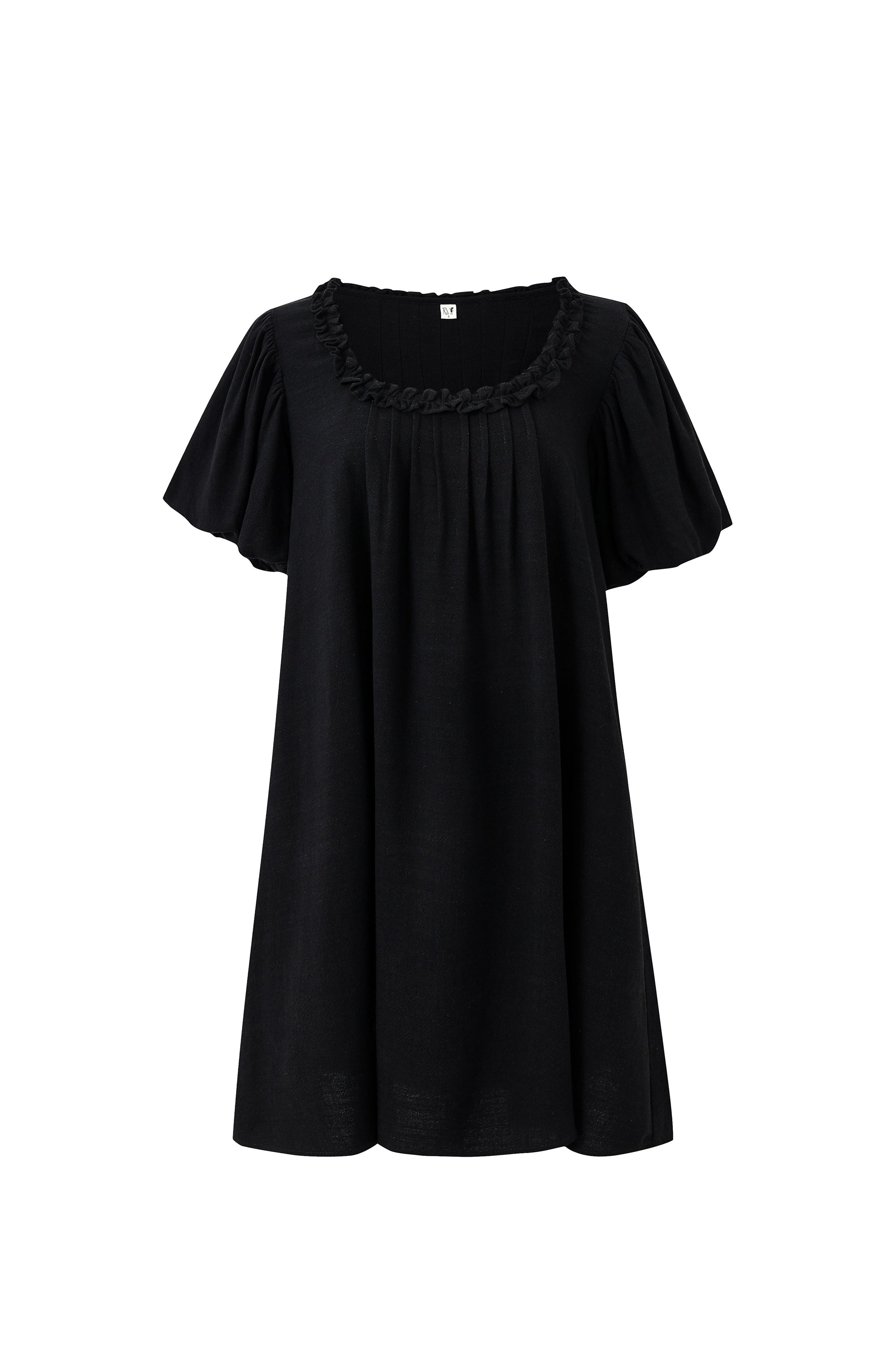 Soft Linen Babydoll Mini Dress Black