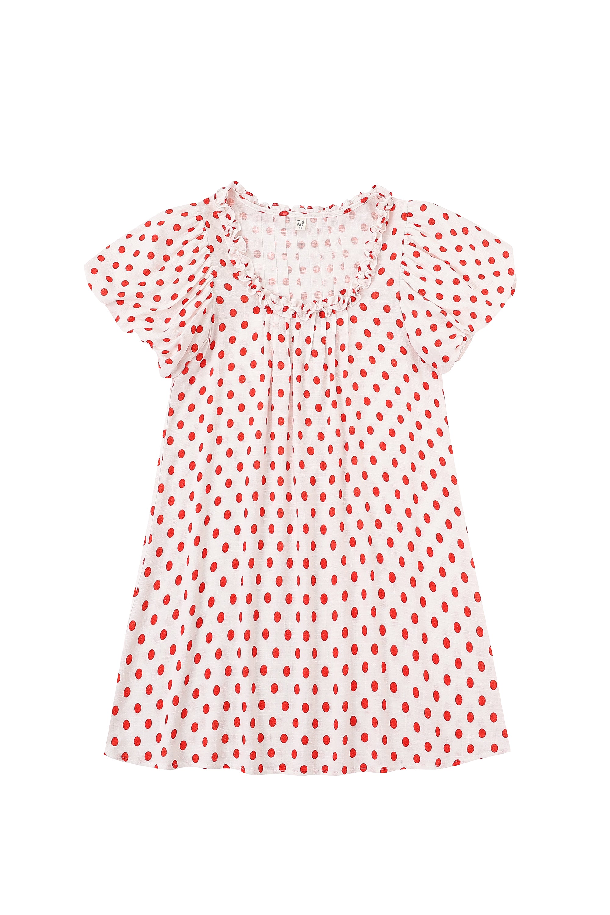 Soft Linen Babydoll Mini Dress Red Polka Dot